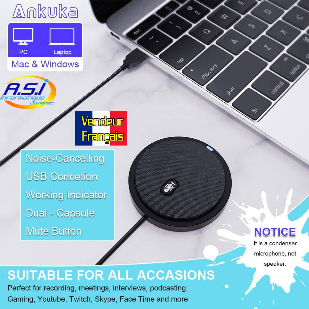 Ce microphone de conférence est facile d’utilisation puisqu’il ne nécessite pas d’installation de pilote ou logiciel particulier. Vous le brancher sur un port USB de votre Mac ou de votre PC et vous pouvez l’utiliser directement.