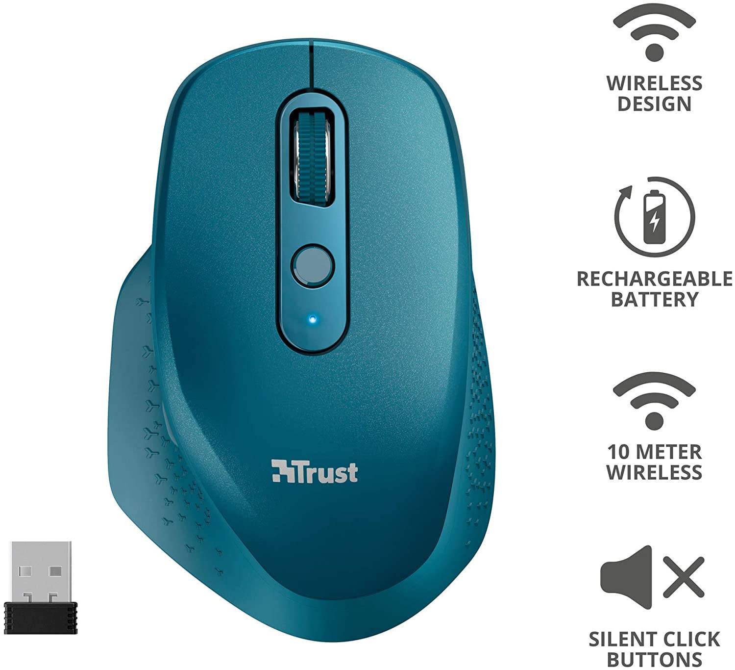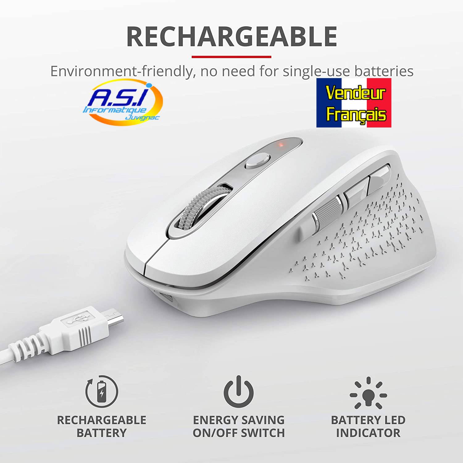 · La souris sans-fil Trust OZAA au look ergonomique vous offre des heures de travail confortablement positionné. Cette souris sans fil est rechargeable grâce à sa batterie intégrée.