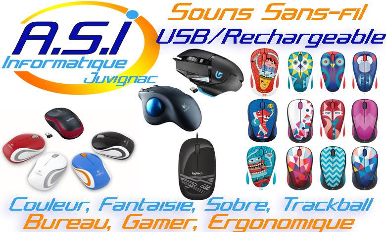 Que ce soit une souris sans-fil, à fil USB ou une souris PS2 (ancien format), vous trouverez forcement votre bonheur chez A.S.I. Informatique Montpellier Juvignac.